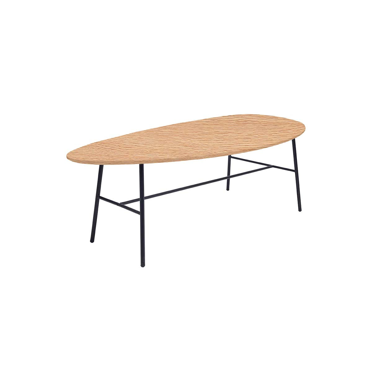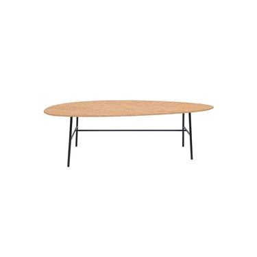 Mesa de Centro Big Ovo enchapada en roble natural, diseño ovalado moderno y base de acero lacado. Ideal para living, oficina y uso contract.
