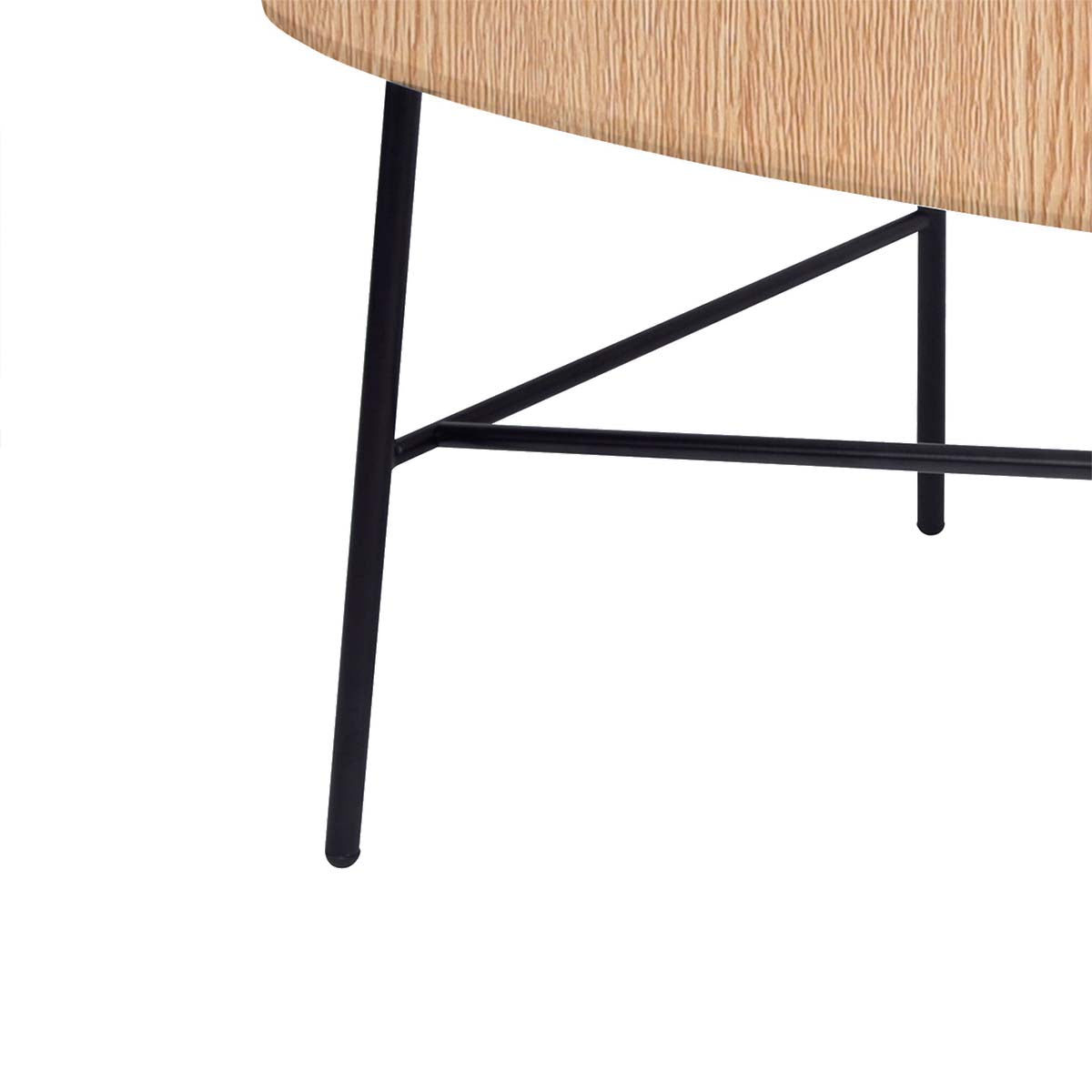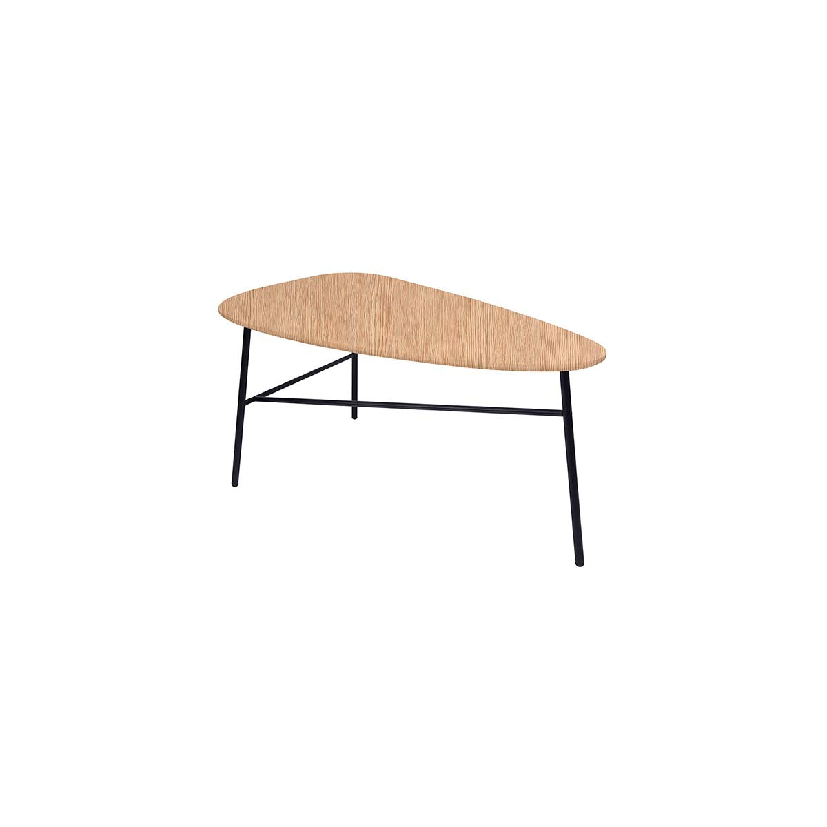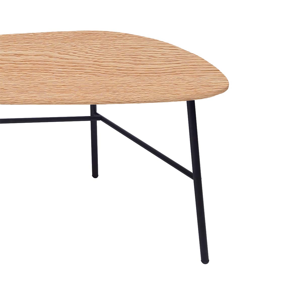 Mesa de Centro Ovo enchapada en roble natural, diseño ovalado moderno y base de acero lacado. Ideal para living, oficina y uso contract.