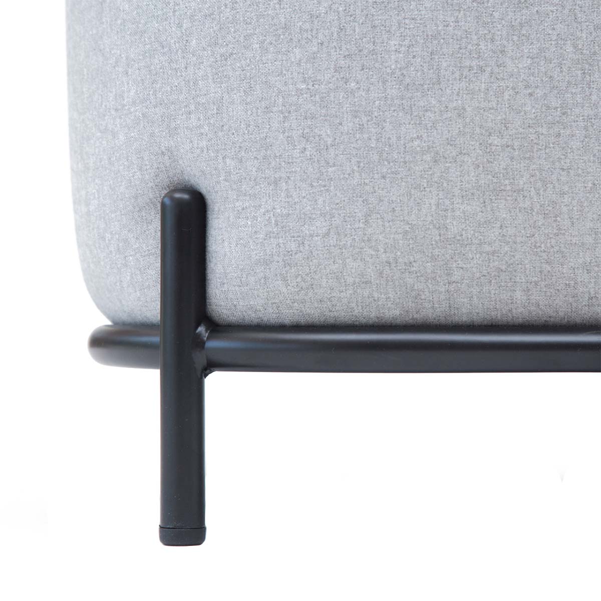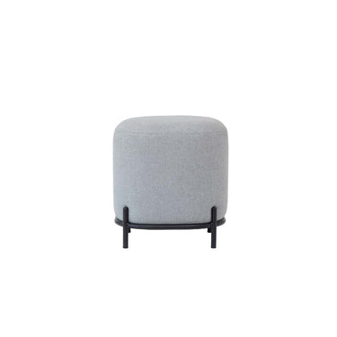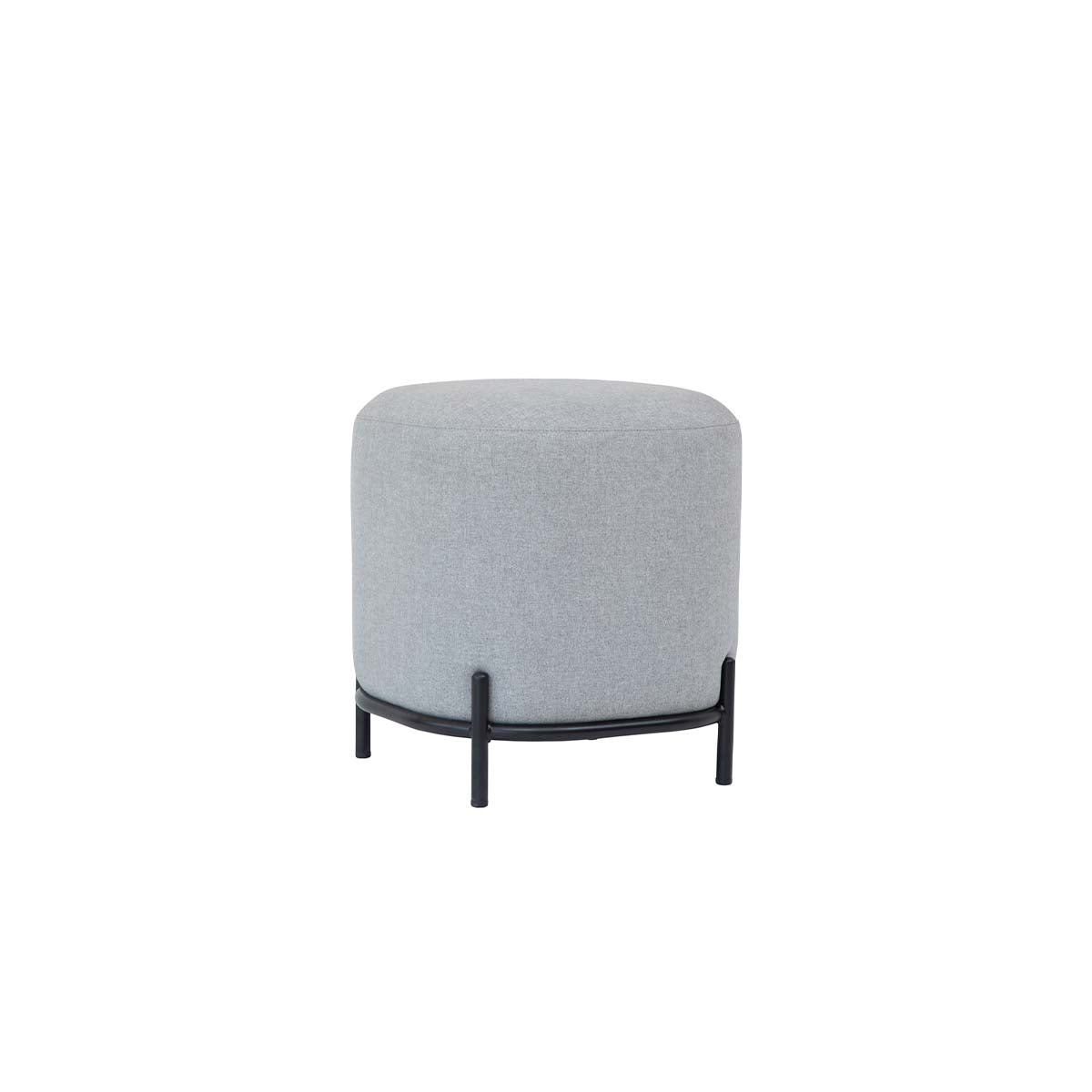 Pouf Pop tapizado en tela con base de acero negro mate. Asiento versátil para living, oficinas y salas de espera, ideal para uso diario y espacios de alto tráfico.