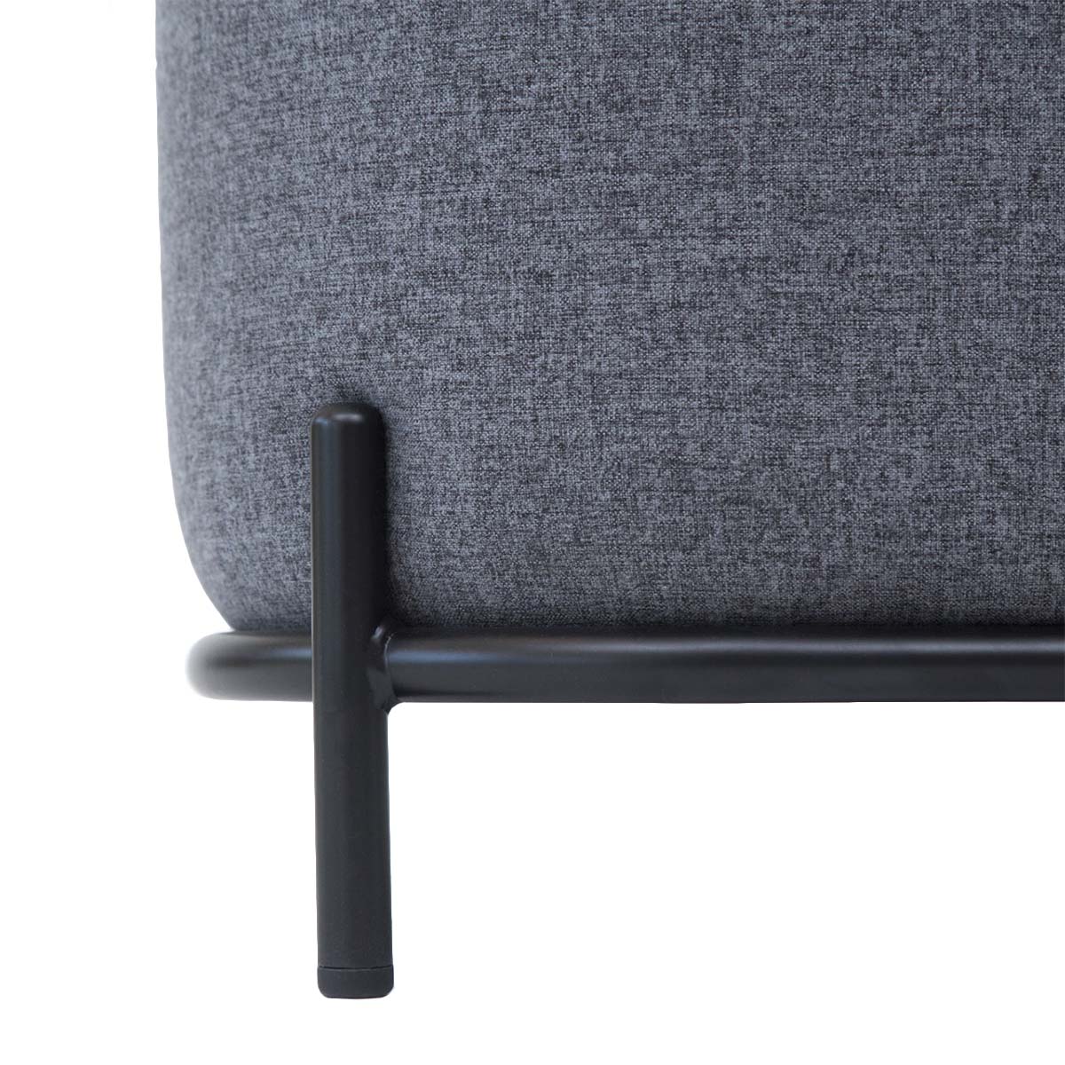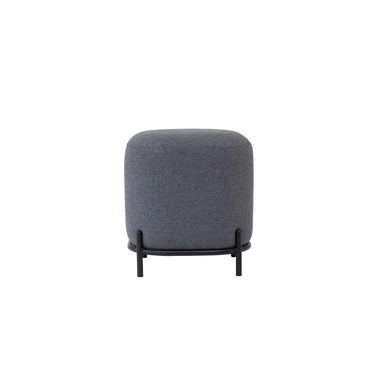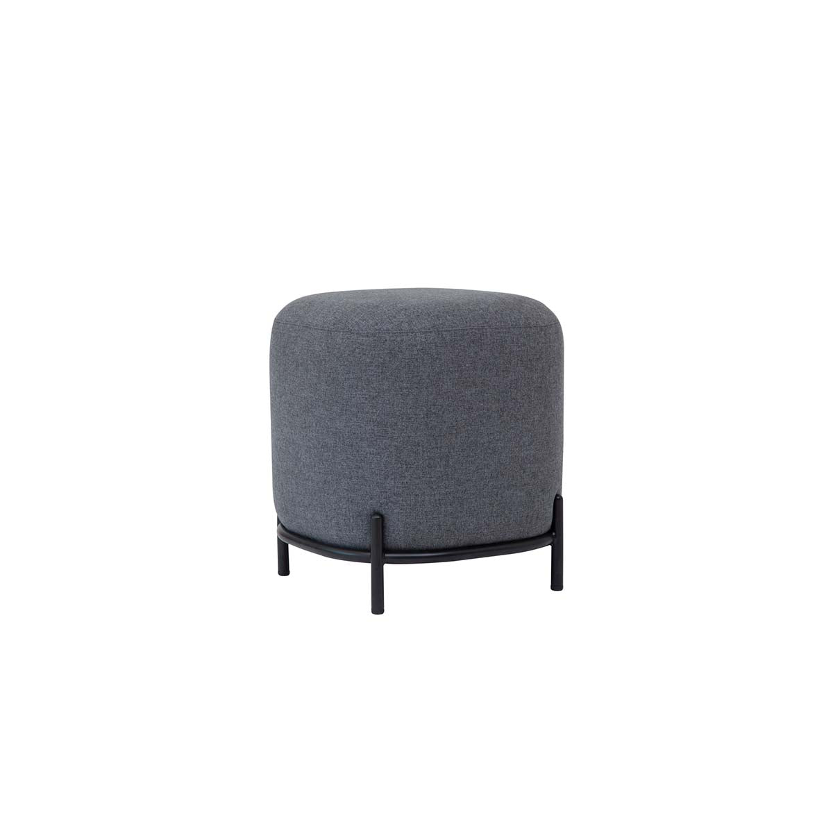 Pouf Pop tapizado en tela con base de acero negro mate. Asiento versátil para living, oficinas y salas de espera, ideal para uso diario y espacios de alto tráfico.