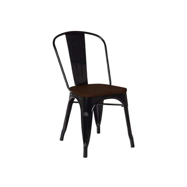 Silla Tolix que combina el icónico diseño industrial con un acabado en madera barnizada en café con tratamiento especializado. Esta pieza destaca por su proceso de pintura de precisión que realza la durabilidad y estética del material, proporcionando una solución de asiento versátil para espacios modernos y contemporáneos.