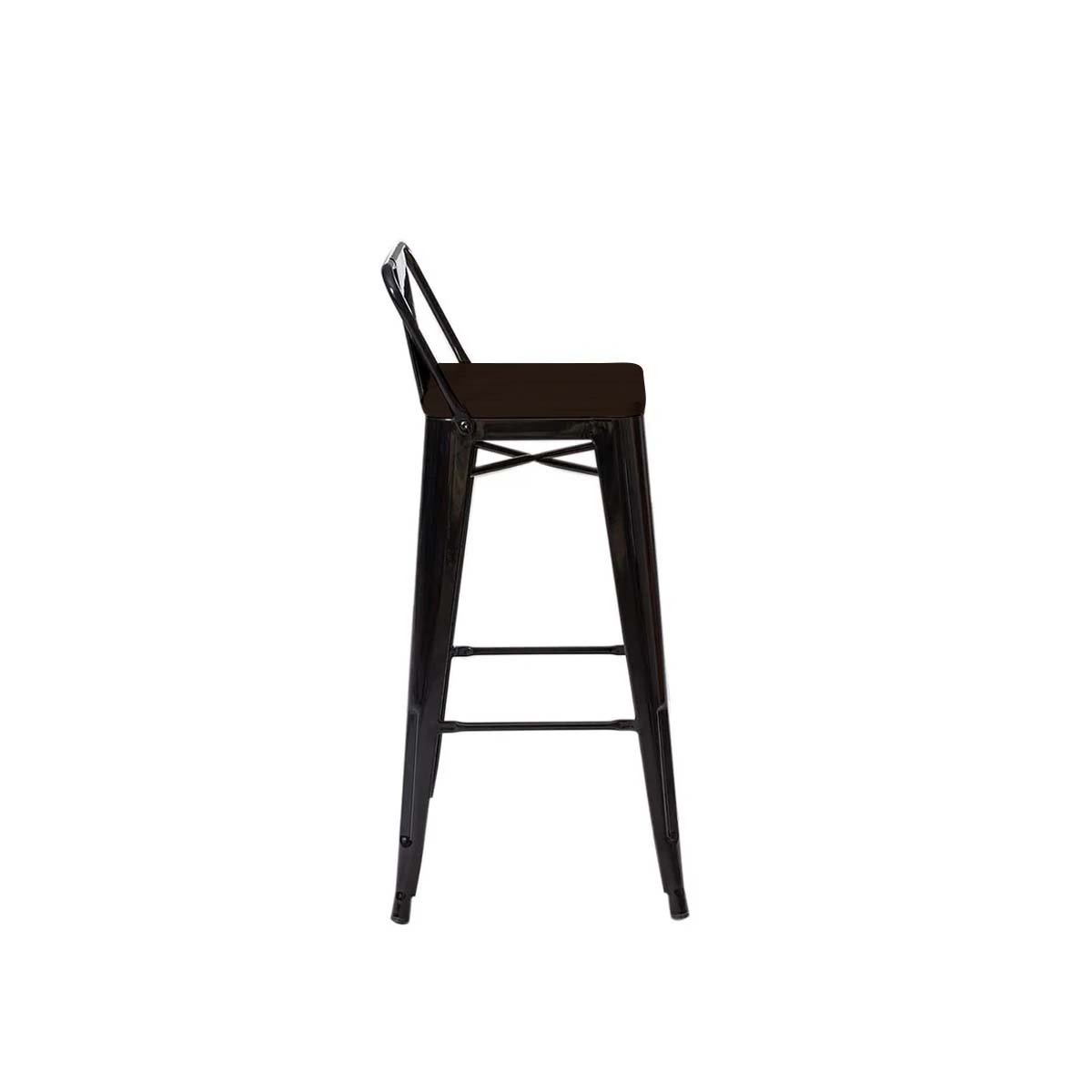 Taburete Tolix con Madera Barnizada Negra 66 cm