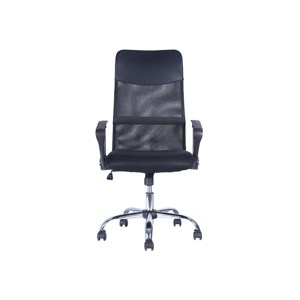 Respaldo de malla con soporte lumbar fijo y apoyabrazos de PP fijos.