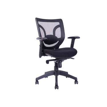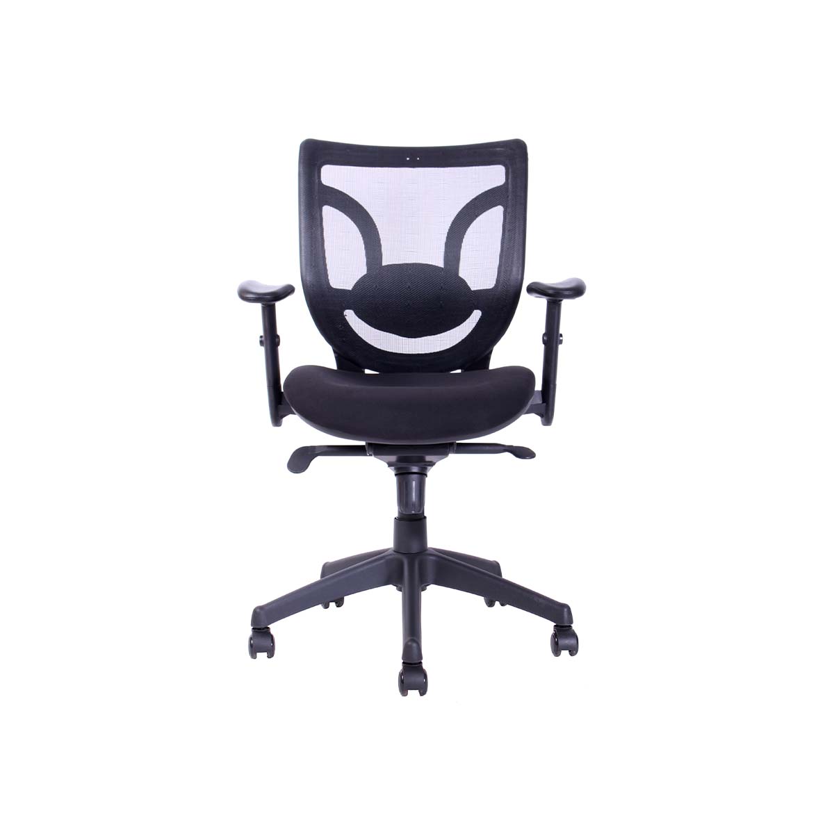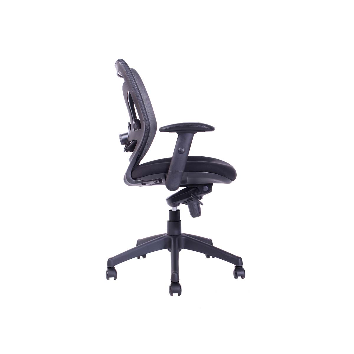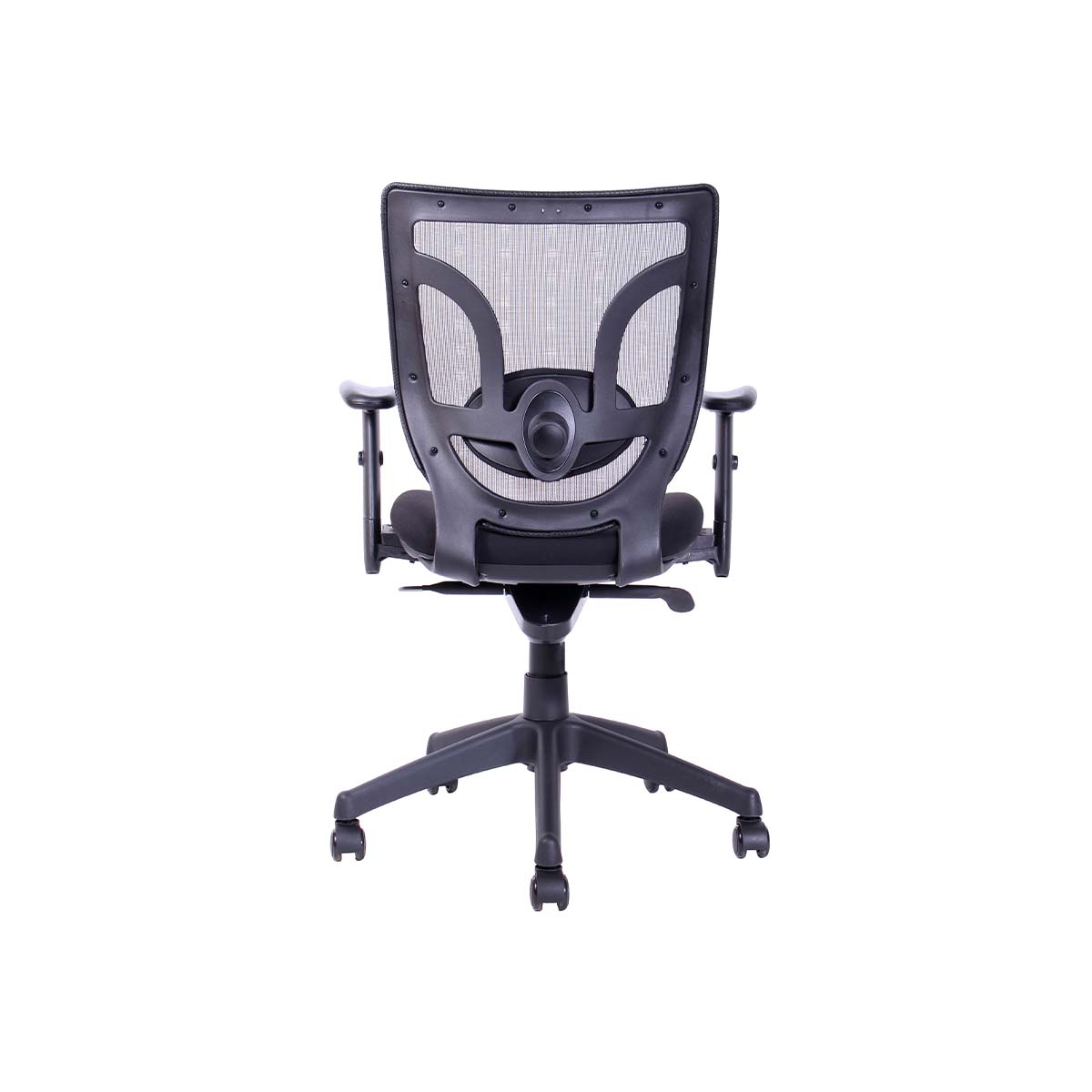 Respaldo de malla con soporte lumbar ajustable en altura y profundidad.