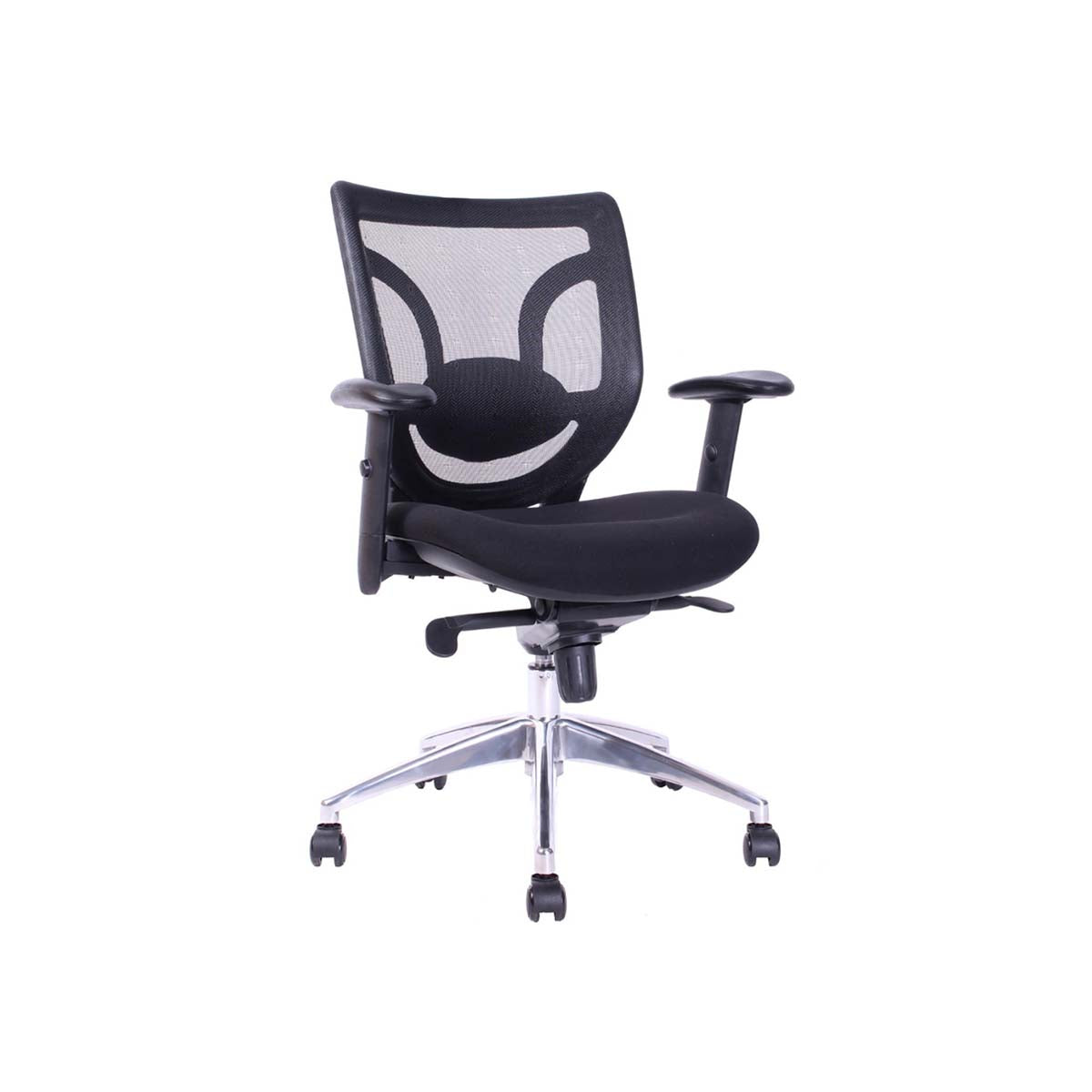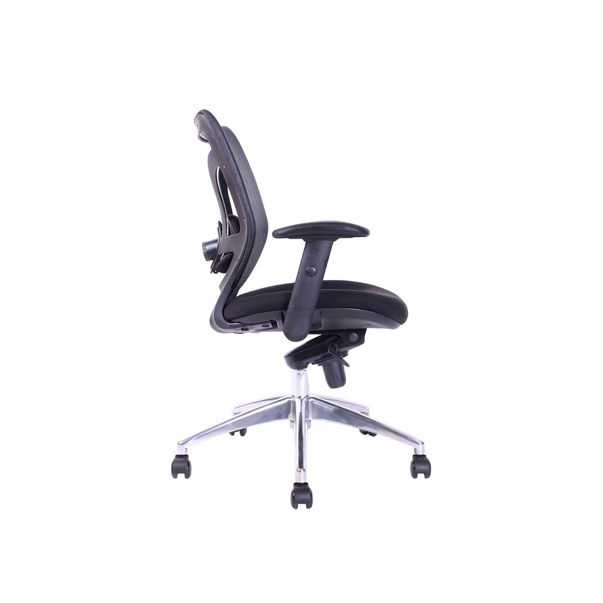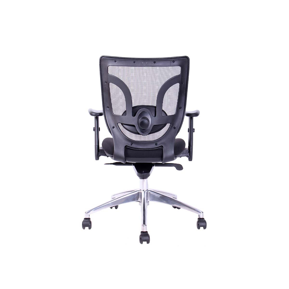Respaldo de malla con soporte lumbar ajustable en altura y profundidad.