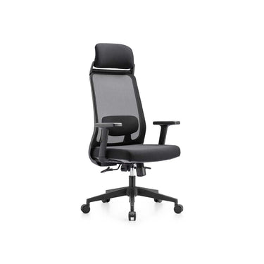 Silla de oficina diseñada para espacios corporativos de alto rendimiento. Cabecero en poliuretano tapizado proporciona soporte cervical superior, respaldado por malla de poliéster transpirable que optimiza la circulación de aire. Asiento con espuma inyectada de densidad controlada garantiza comodidad prolongada. Brazos regulables en 3D se adaptan a múltiples posiciones de trabajo. Mecanismo sincrónico 3.0 con tres posiciones de bloqueo permite ajustes precisos. Resorte neumático clase 3 certificado BIFMA soporta 120.000 ciclos rotativos. Base estrella de nylon reforzado con fibra de vidrio (680mm) y ruedas de poliuretano de 60mm aseguran estabilidad y movilidad profesional.