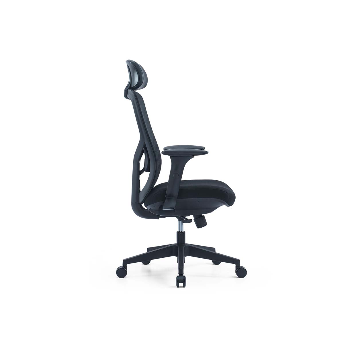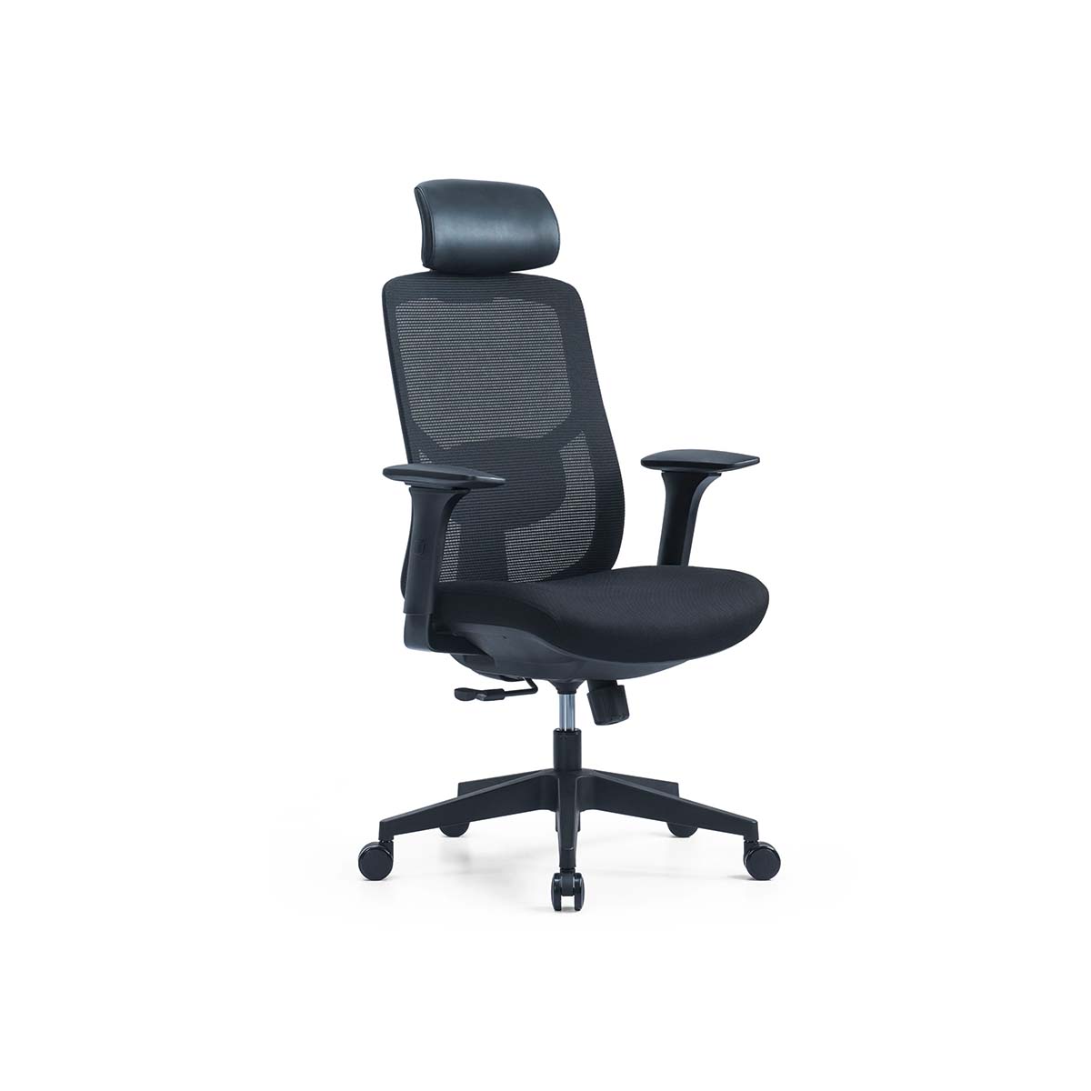 Silla con mecanismo sincrónico, desplazador de asiento, 3 posiciones de reclinación y sistema de tensión regulable.