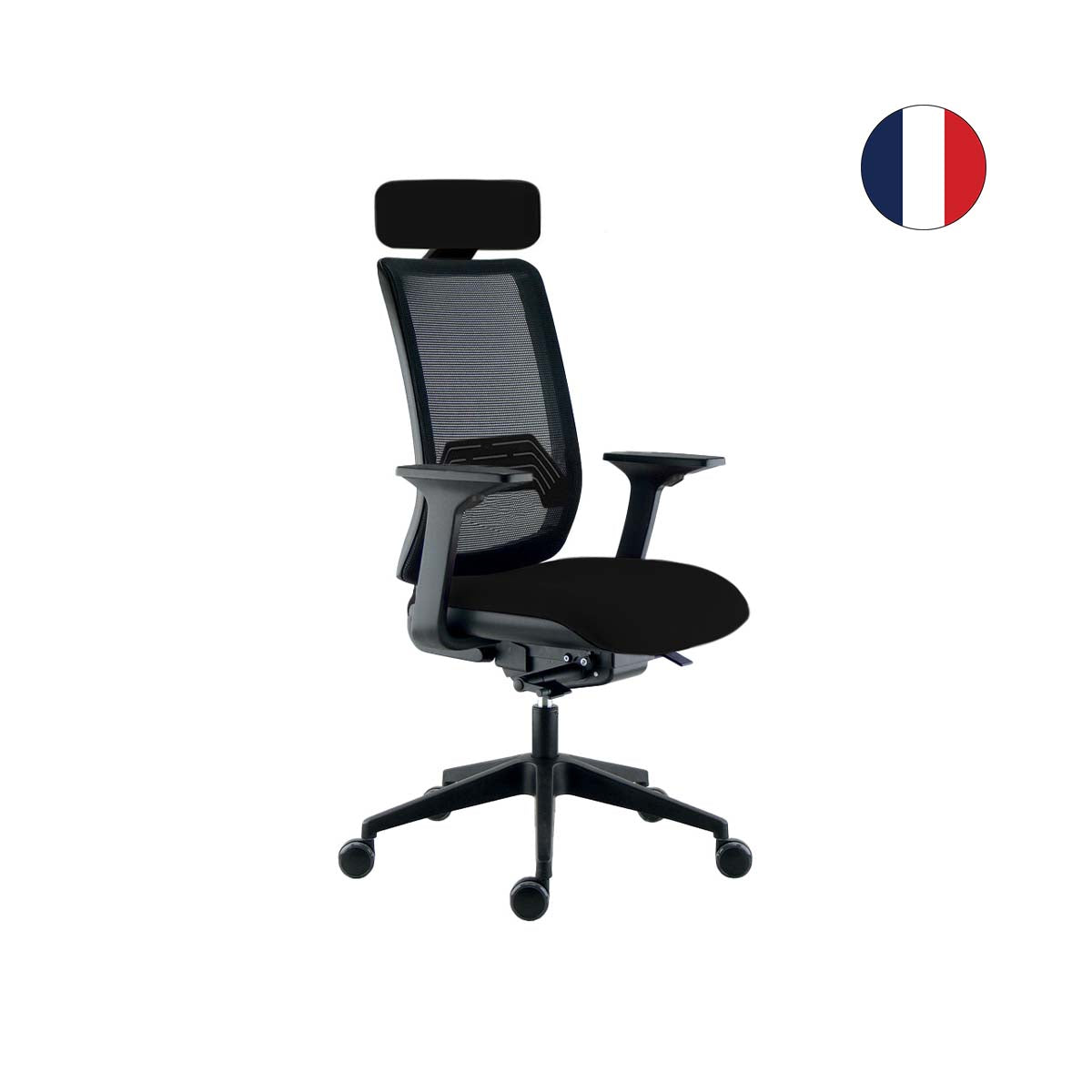 Silla con mecanismo de contacto sincrónico. Se puede bloquear en 5 posiciones con ajuste de tensión personalizado y anti retorno de seguridad. Ajuste de la profundidad de asiento por traslación delante-atrás (recorrido 60 mm, 5 posiciones de bloqueo).